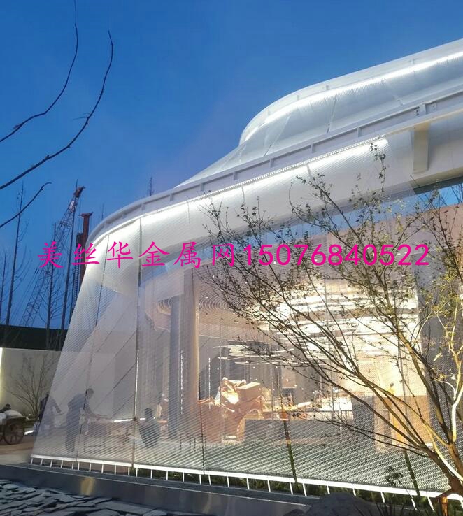 售楼处的造型是在传承这样的一种理念,利用现代的半透明的金属网帘这样一种环保材料形成内外空间的在视觉上和空间上内敛而优雅的过渡。半透明金属网帘所呈现的若隐若现的视觉模糊传递着层次丰富的空间纵深感,同时利用金属网帘自然下垂所形成的符合自然力学逻辑的优美的弧线向同样符合自然结构逻辑的中式建筑致敬。